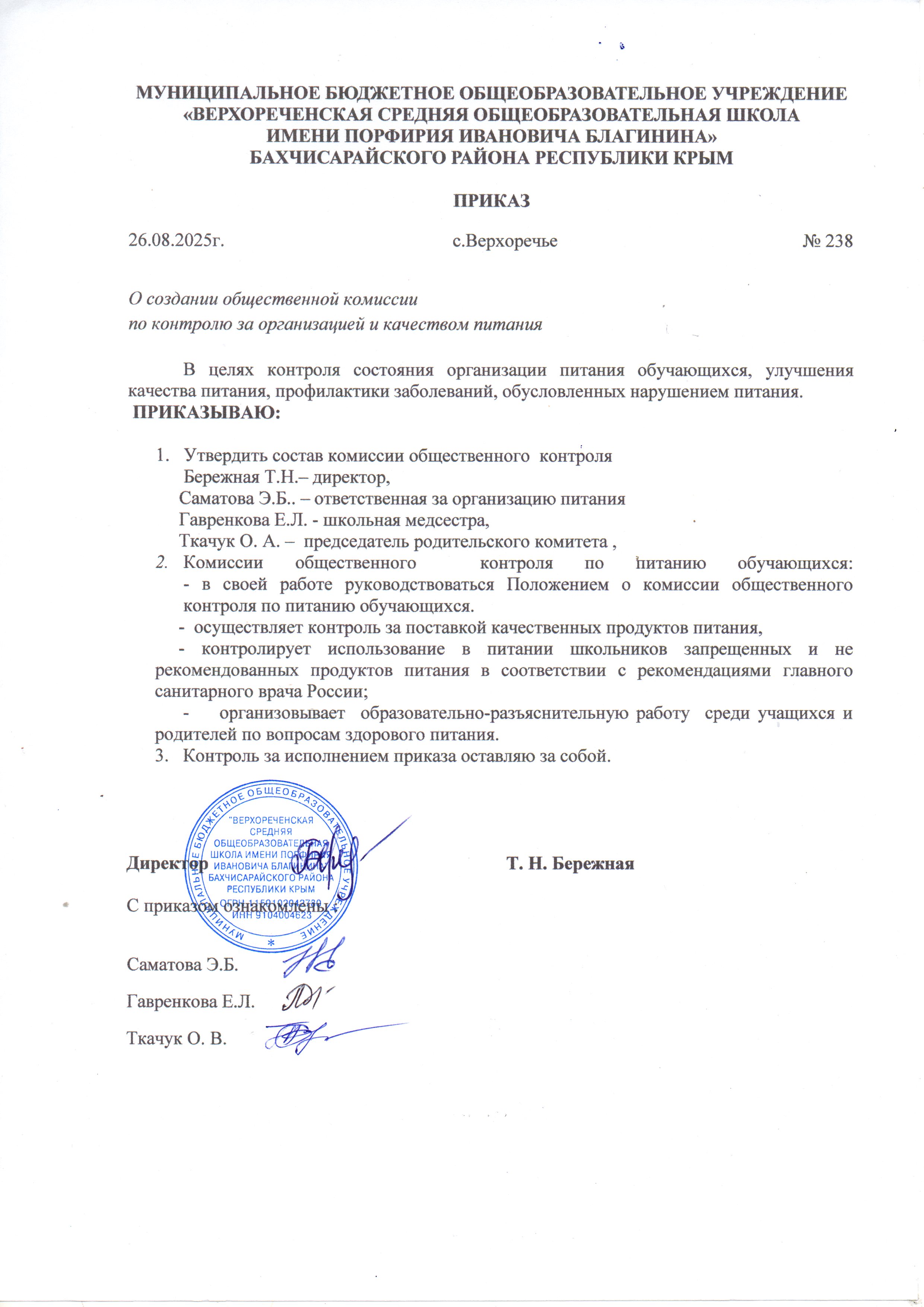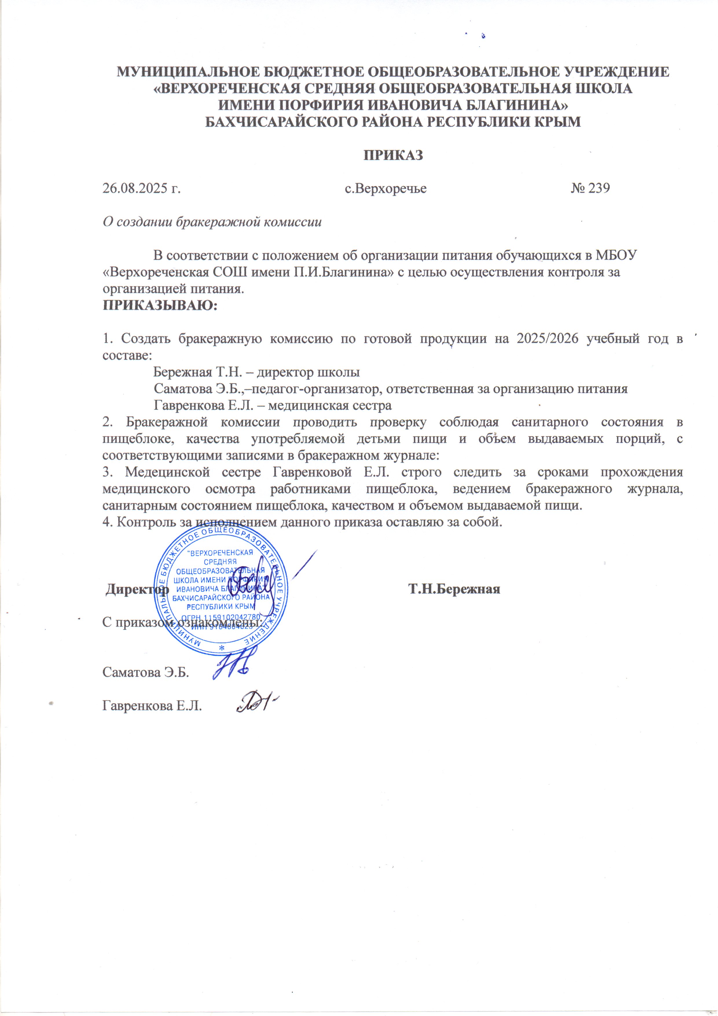 Муниципальное бюджетное общеобразовательное учреждение «Верхореченская средняя общеобразовательная школа имени Порфирия Ивановича Благинина» Бахчисарайского района Республики Крым