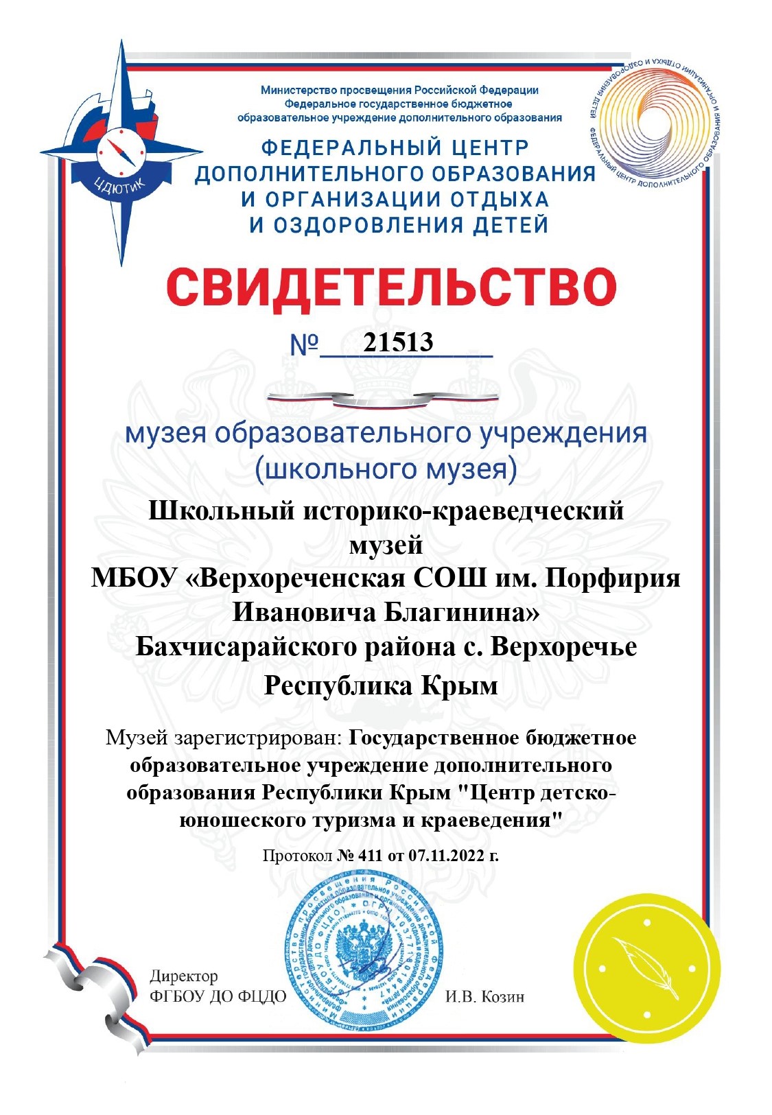 Муниципальное бюджетное общеобразовательное учреждение «Верхореченская средняя общеобразовательная школа имени Порфирия Ивановича Благинина» Бахчисарайского района Республики Крым